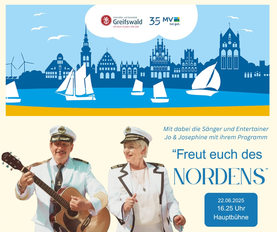 Jo und Josephine beim MV-Tag 2025 Greifswald Plakat Freut euch des Nordens Konzert Jo & Josephine
